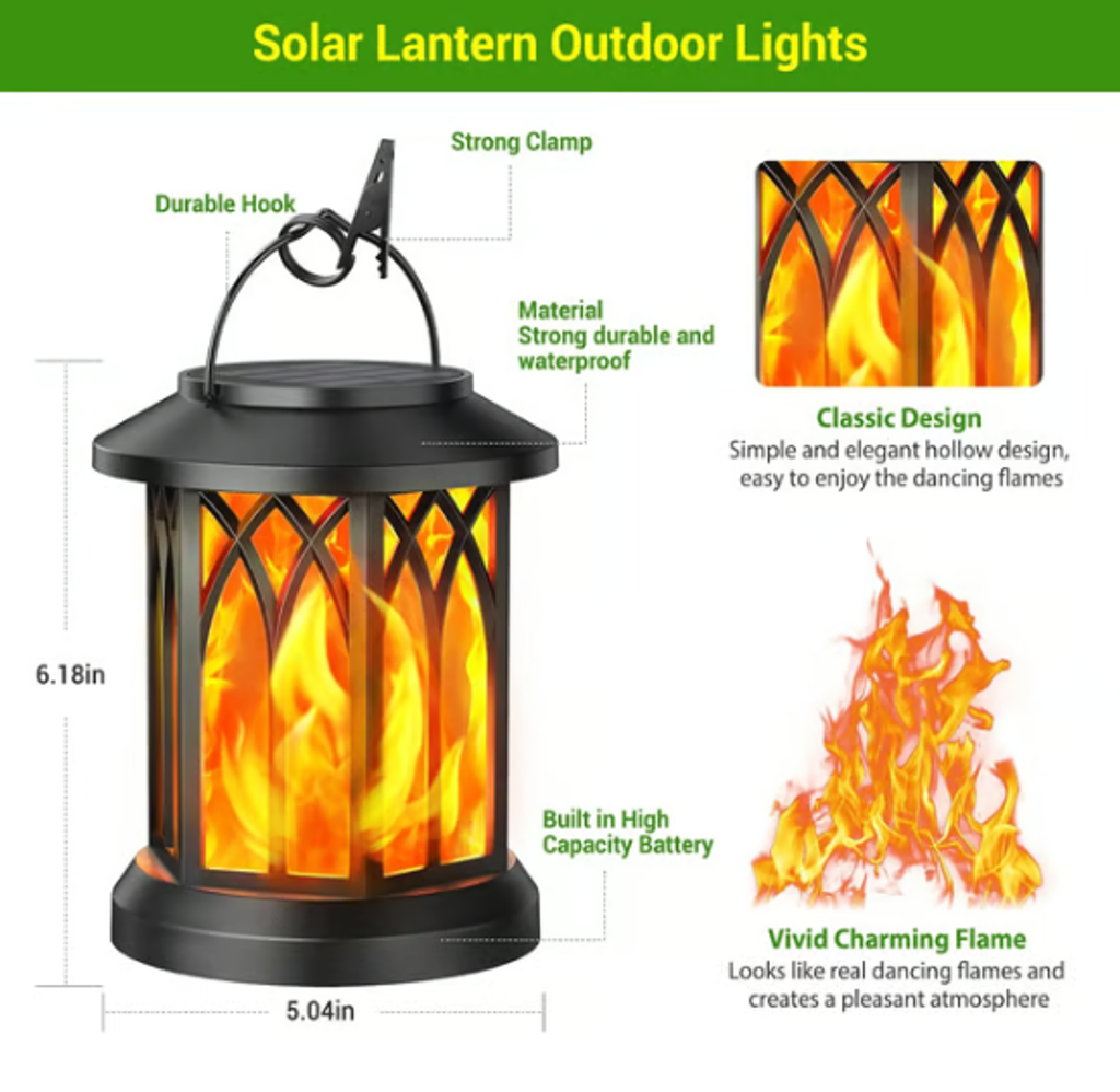 ✨🔥 Upgraded Flickering Flame Solar Lantern Outdoor Waterproof Light