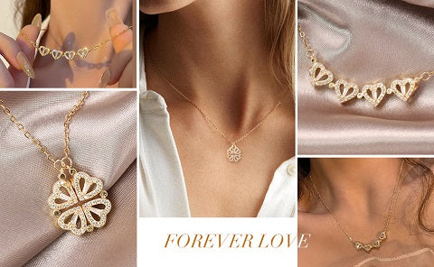 A UNIQUE AND STYLISH DESIGN —— The heart pendant on the necklace is a magnet that can be combined or unfolded. The bow of one is unfolded Affectionate smile,Is combined A four-leaf clover for happiness
