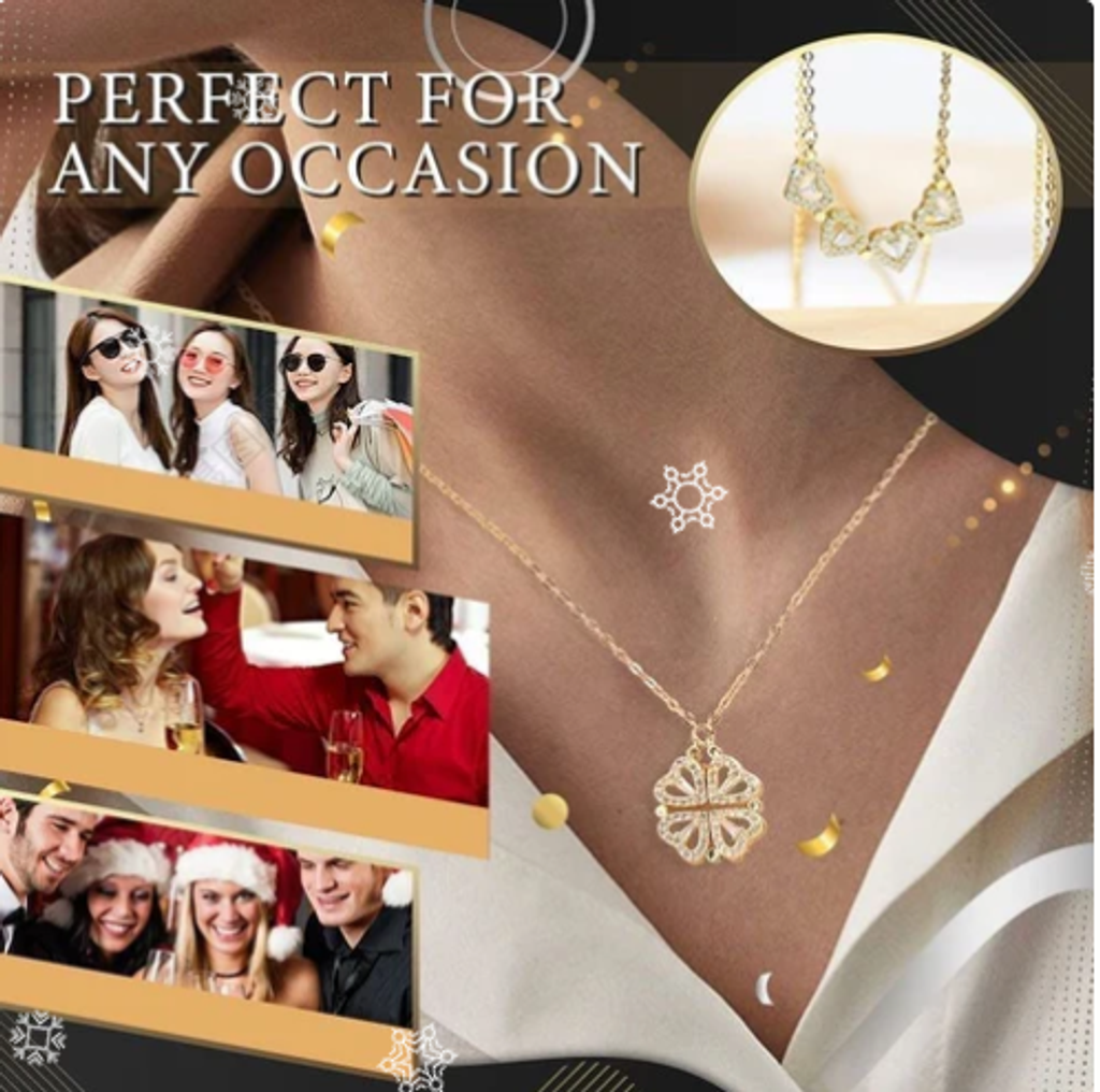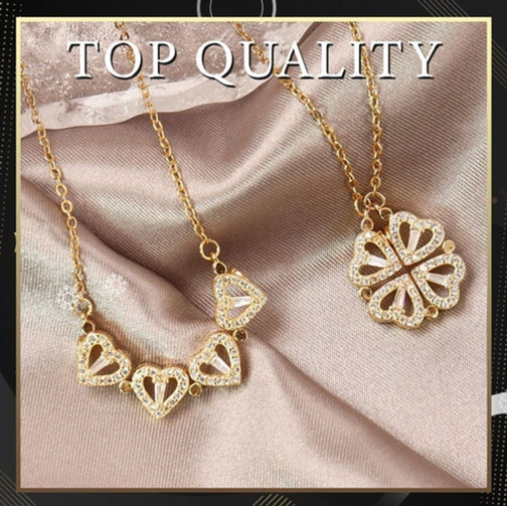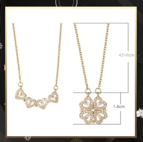 A UNIQUE AND STYLISH DESIGN —— The heart pendant on the necklace is a magnet that can be combined or unfolded. The bow of one is unfolded Affectionate smile,Is combined A four-leaf clover for happiness