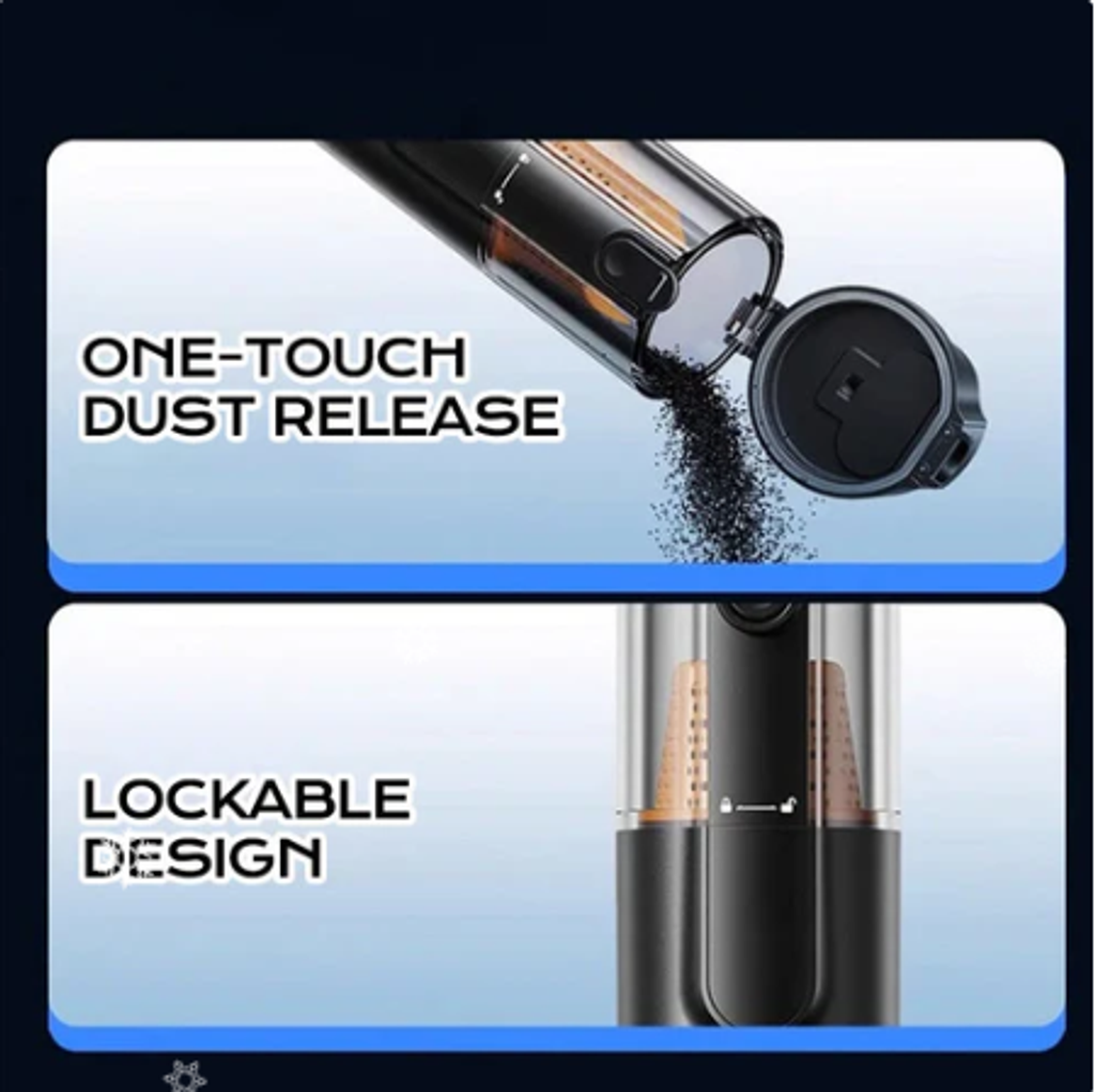 CORDLESS & POWERFUL SUCTION: Enjoy cordless convenience with one-touch dual-speed control. Equipped with a high-speed motor, it delivers robust 15kPa suction to easily pick up fine desktop dust and stubborn crumbs deep in car seats.