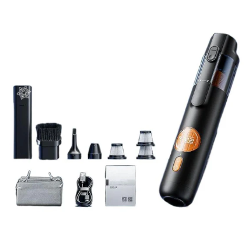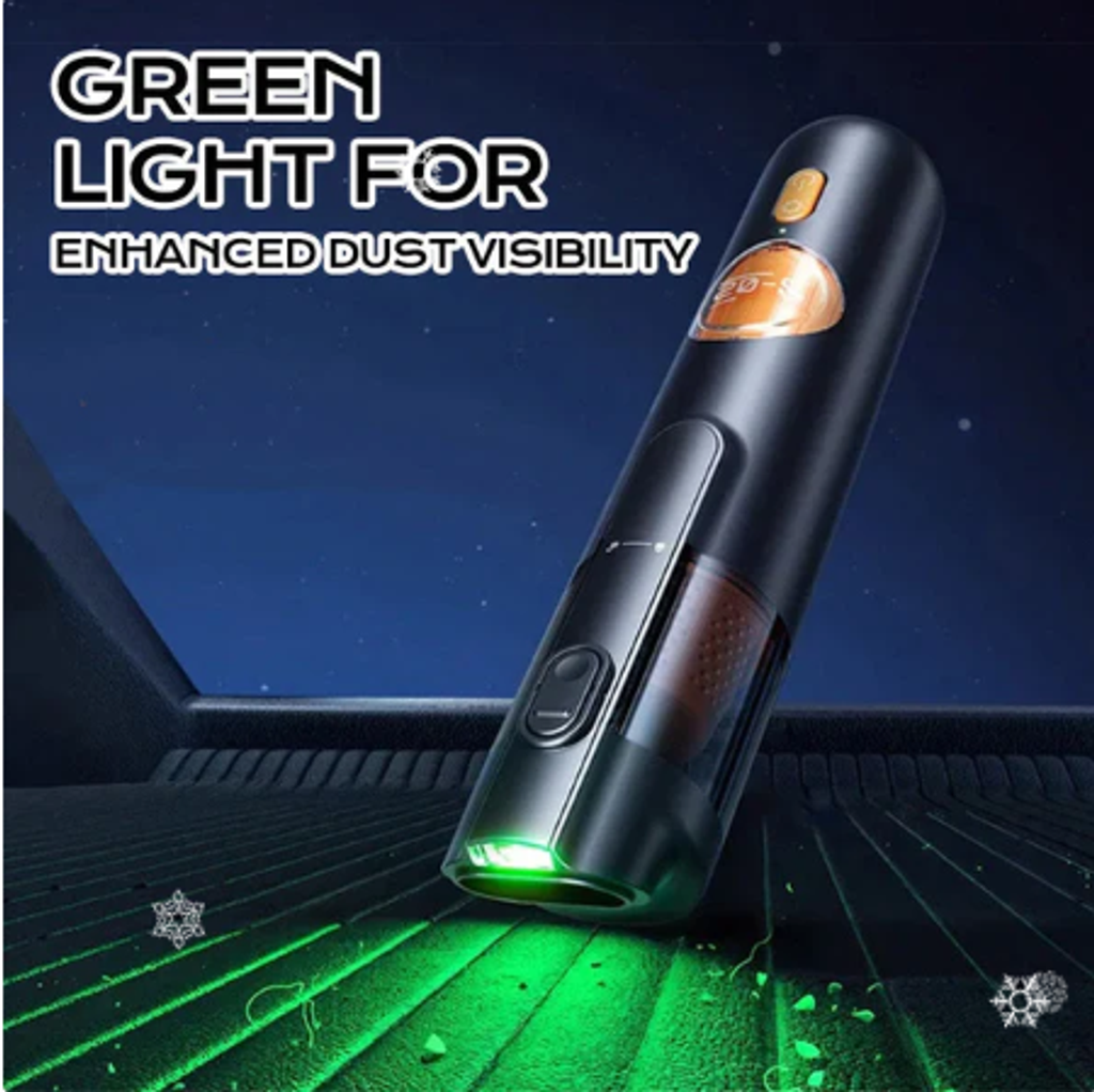 5-IN-1 VERSATILE FUNCTIONALITY: More than just a vacuum, it expertly performs suction, blowing, brushing, inflation, and two-mode illumination—featuring green light for enhanced dust visibility and standard lighting for everyday use.