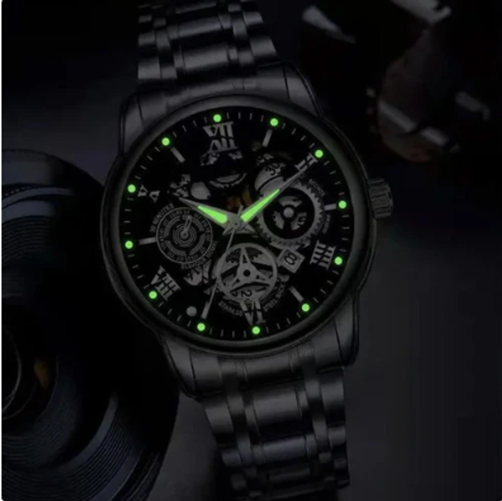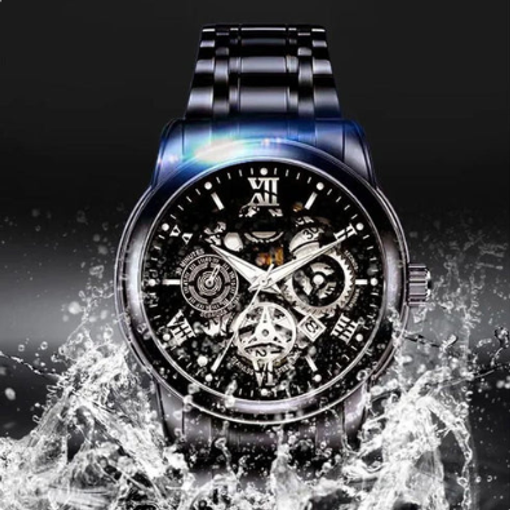Men's Waterproof Roman Skeleton Automatic Mechanical Watch